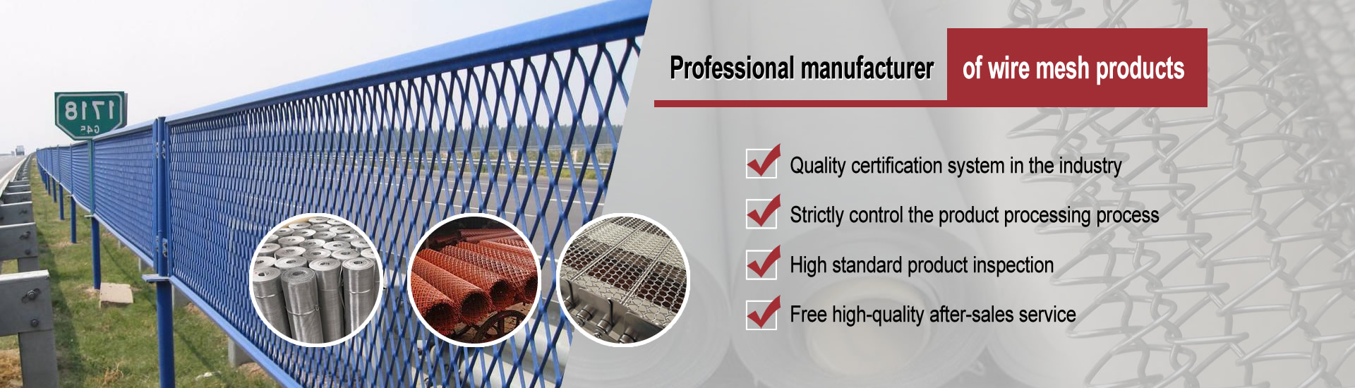 Our company is located in the famous "Hometown of Wire Mesh" in China. It is a large-scale enterprise dedicated to wire mesh products such as expanded metal series, stainless steel mesh and conveyor belts. After years of continuous development, it has now avarious production and testing equipment, adopted high-quality raw materials, strictly managed, and scientifically tested.
